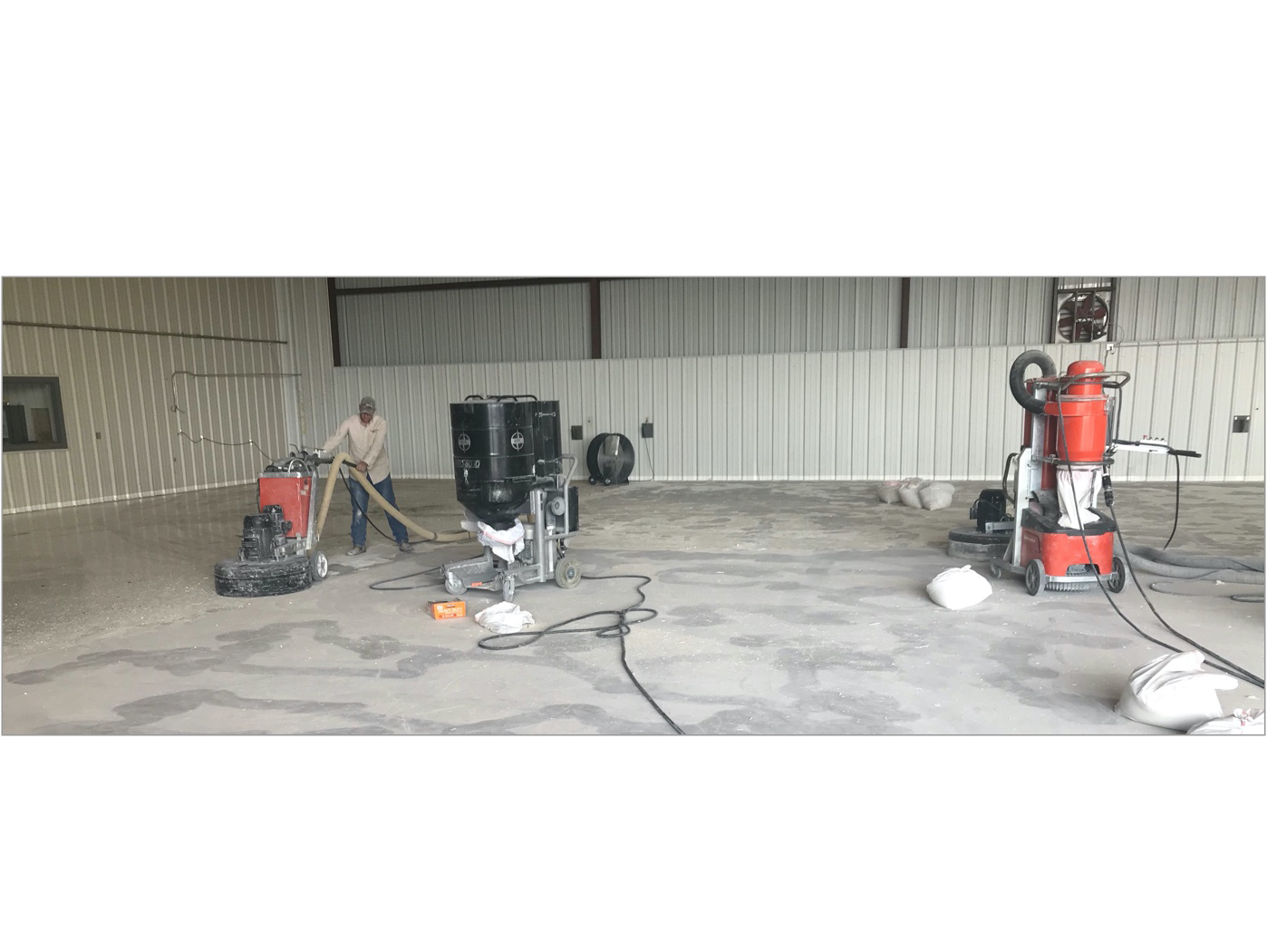 This does not mean renting four cheap grinders at the local rental outfit and putting them in the hands of four laborers. High-end grinders with HEPA dust containment cost 20-30K, they are not readily available at any rental agency. Further, if someone is renting one, they likely don't know how to operate it properly; rotation speed and utilizing the correct hardness or softness of diamonds.