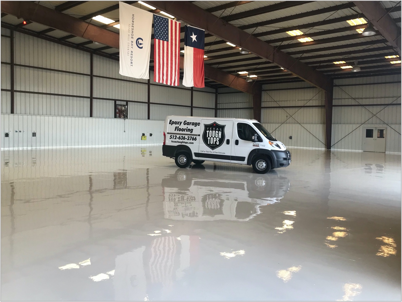 You won't find a more lustrous, hard and bold floor than a Texas Tough Tops epoxy floor.